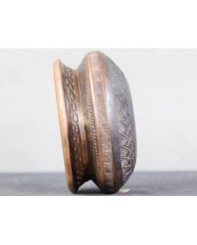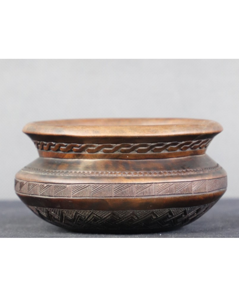 Ta niewielka miseczka ujęła mnie elegancją i precyzją wykonania. Kupiłem ją na zasadzie kontrastu gdyż w przypadku większości dzieł afrykańskiej sztuki plemiennej o umiarze i powściągliwości mowy być nie może. Często są groteskowe, dynamiczne, zdeformowane.