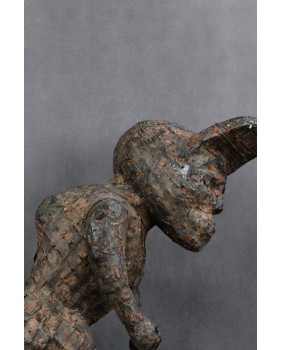 Rzeźba w tej formie jest ekstremalnie rzadka. Oprócz muzealnych obiektów przedstawiających obite blachą zwierzęta, nie spotkałem nigdzie odpowiednika. Zachowała się w dobrym stanie. Powstała jak sądzę w XX wieku, raczej w drugiej połowie. Ma 44 cm wysokości, 25 cm szerokości i 25 cm głębokości.