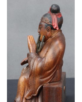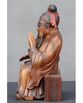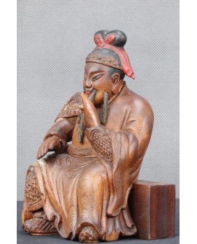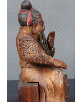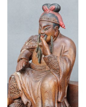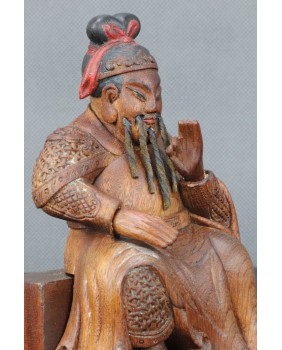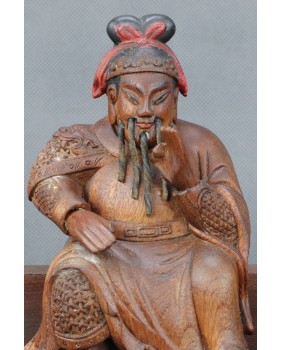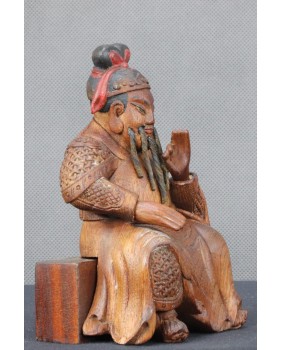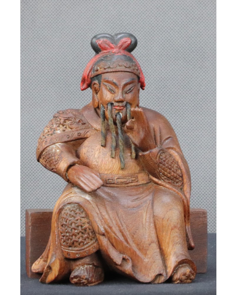 Gdy próbowałem znaleźć informacje o sportretowanej w rzeźbie postaci, wyświetlały mi się prawie identyczne rzeźby z podpisem Kuandi. I zero informacji kim był Kuandi. Dopiero pomoc zaprzyjaźnionego eksperta od sztuki Japonii i Chin nakierowała mnie na postać Guandi lub Guan Yo. Wszystkie zapisy odnoszą się do tej samej osoby. Różnice wynikają z transkrypcji chińskich słów na grunt europejski.
