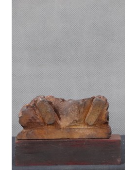 Rzeźba została wykonana w XX wieku. Sądzę, że w pierwszej połowie bo drewno ładnie już spatynowało. Zachowała się w niezłym stanie choć mogę podejrzewać, że dłonie zostały dorobione, trochę nie trzymają proporcji, odstają od reszty bardzo precyzyjnie wykonanej rzeźby. Brak oryginalnej podstawy i klapki zamykającej wnękę przeznaczoną do składania zapisanych modlitw. Rzeźba została zapewne wykonana z myślą o domowym sanktuarium.