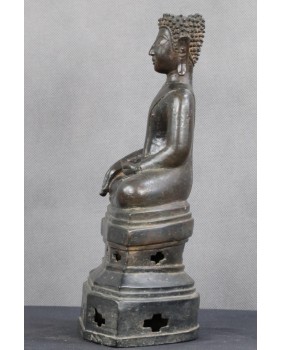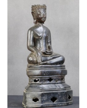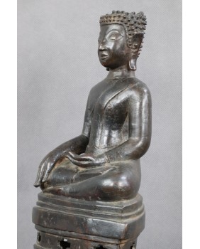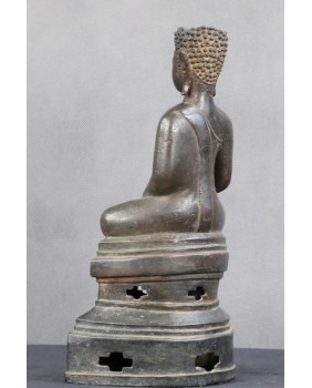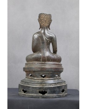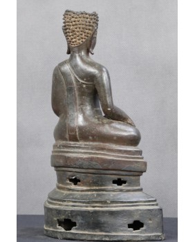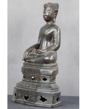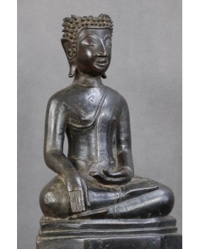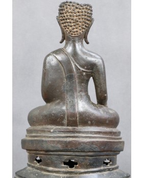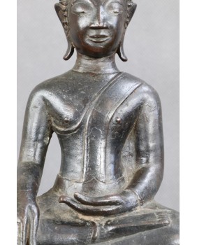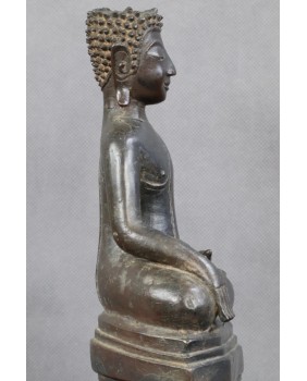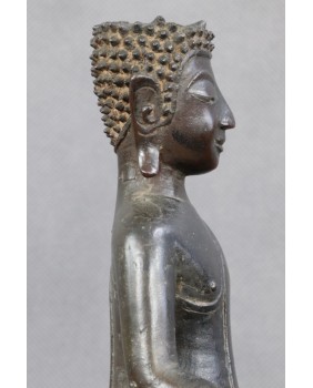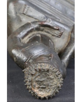 Rzeźba ma piękne patyny. Niestety była kiedyś uszkodzona. Widać naprawę na szyji Buddy, brakuje zwieńczenia głowy. Nie zmienia to w niczym wrażenia jakie na mnie zrobiła. Cena za jaką wystawiam jest okazyjna. Zdaję sobie sprawę z realiów polskiego rynku ale ta rzeźba w dobrym sklepie na Zachodzie kosztowałaby po przeliczeniu kilkadziesiąt tysięcy złotych.