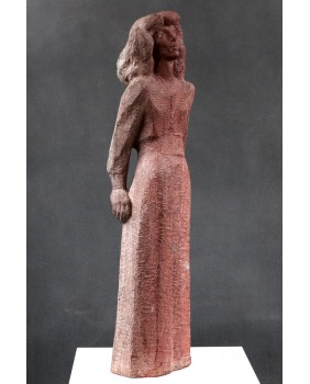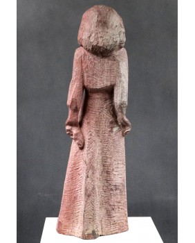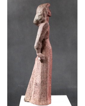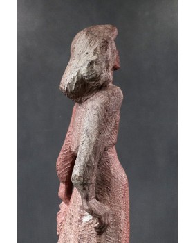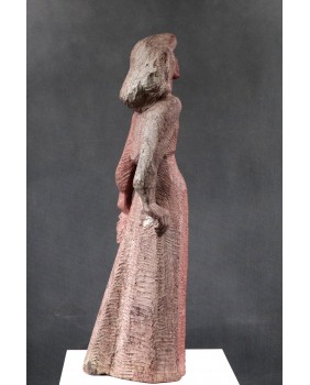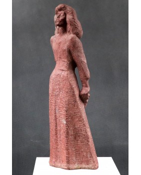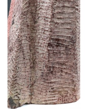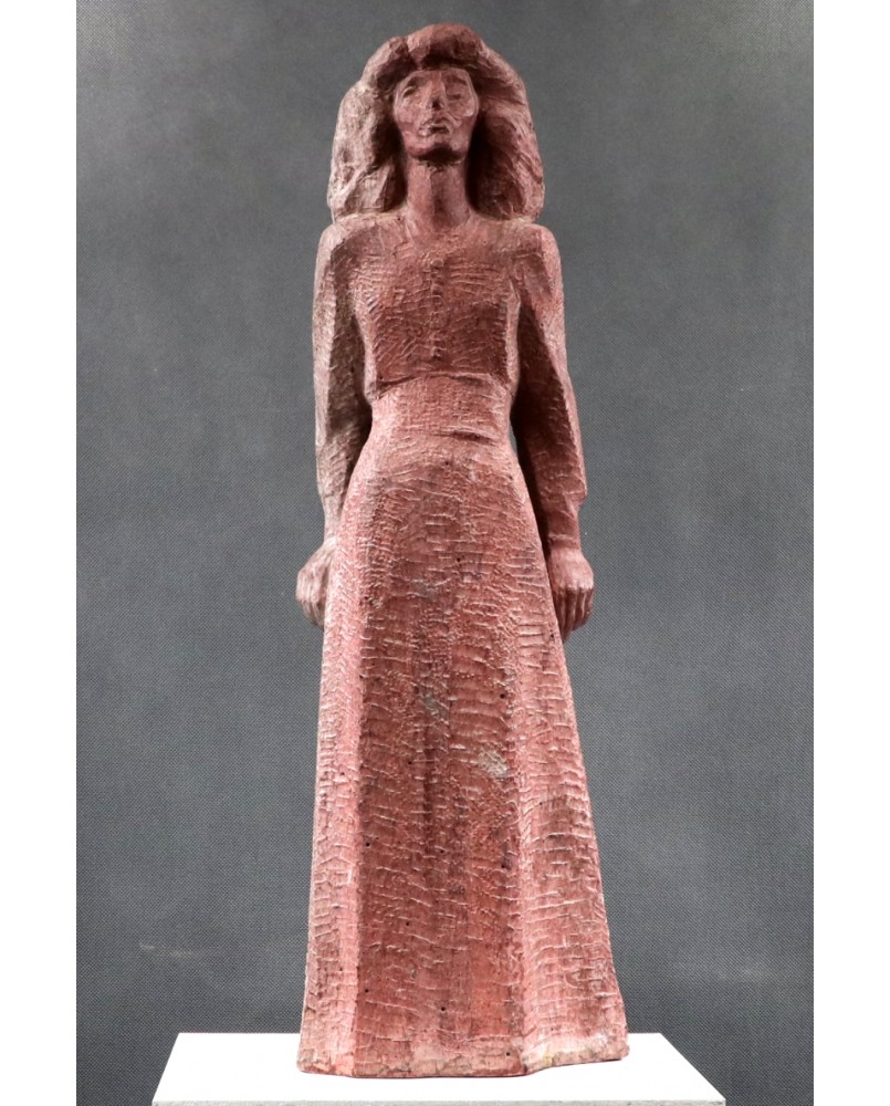 Revol kocha także teatr. Stąd zapewne rzeźba, którą dzisiaj sprzedaję. To podobizna francuskiej aktorki Monelle Valentin, przeżywającej czasy swej największej świetności na początku lat pięćdziesiątych. Według mnie rzeźba czerpie swój artystyczny rodowód ze stylu art deco, na który artysta nałożył filtr surowości i egalitaryzmu lat powojennych. Rzeźba wygląda na wykutą w kamieniu ale bardziej prawdopodobne jest, że do jej wykonania użyto formy i mielonego marmuru. Widziałem też wersję tej rzeźby wykonaną w brązie. Jest dość duża. Jej wysokość to ok. 60 cm.