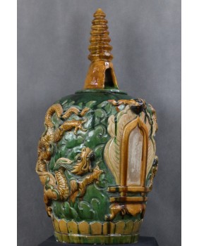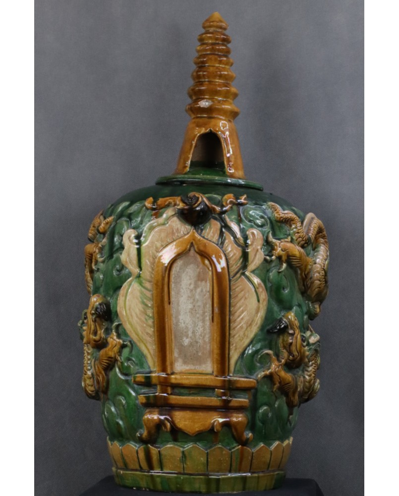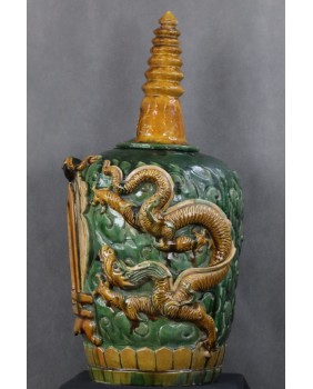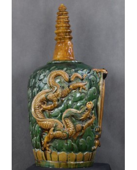 Nie potrafię jednoznacznie określić przeznaczenia oferowanego naczynia. Cesarski smok w jego dekoracji może świadczyć o jego znaczeniu. Mogło służyć jako pojemnik na ryż, zboże, oliwę czy wino. W podobnym kształcie powstawały też urny na prochy zmarłych.