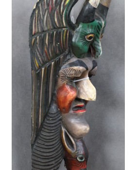 Maska, którą oferuję najbardziej przypomina gwatemalskie maski odnaszące się do indiańskiego wodza Tecum Umana. Tecum Uman zginął w XVI wieku, w bitwie z wojskami hiszpańskiego najeźdzcy, dowodzonymi przez Pedro Alvorada. Bitwa obrosła wieloma legendami, których częścią jest ptak quetzal mający przybrać barwę od krwi wodza. Tecum Uman został oficjalnie ogłoszony bohaterem narodowym Gwatemali.