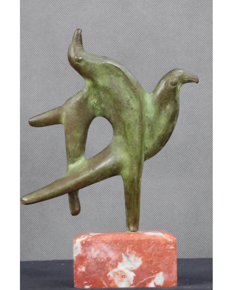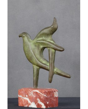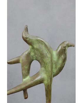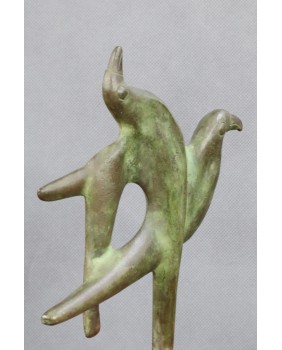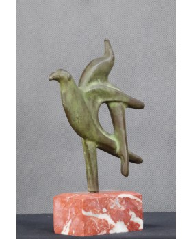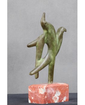 Zastanawiam się, czy powiodła się ta rzecz artyście, ukrywającemu się za gmerkiem, z którego udało mi się odczytać jedynie literkę „f”. Niebanalne jest nałożenie na siebie sylwetek ptaków. Także w naturze, trajektorie lotów jaskółczego stada, kreślą na niebie nieustannie przecinające się linie. Jeśli mogę mieć jakiekolwiek wątpliwości dotyczące tej rzeźby to odnoszą się one do mało smukłych sylwetek ptaków. Ale jak już wspomniałem zakucie w brąz śmigłych jaskółek nie jest sprawą łatwą.