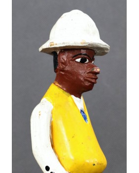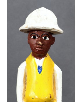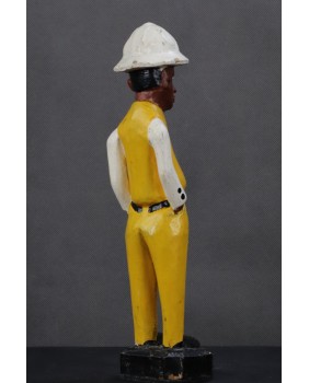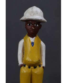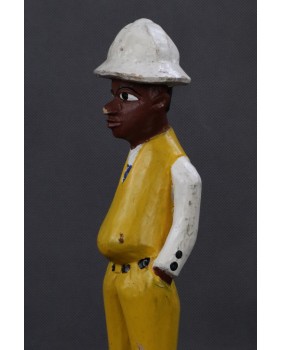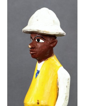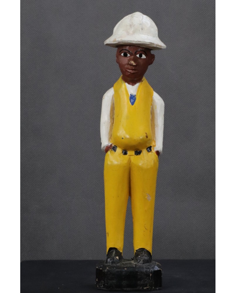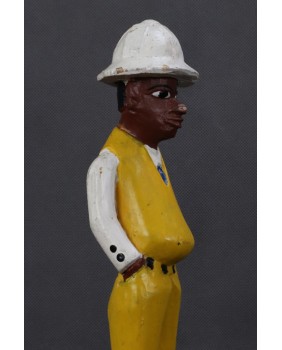 I głównie o to w tej rzeźbie chodzi. O prestiż, symbol zamożności podkreślający status społeczny. Korkowy hełm wzorzysty krawat, pasek, wyglancowane czarne pantofle, europejski strój. Wszystkie te przejęte od białego człowieka atrybuty, miały podkreślać nową sytuację w jakiej znaleźli się bogaci, rdzenni mieszkańcy Afryki. Nowe elity neokolonialnego społeczeństwa.