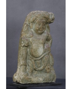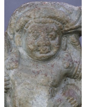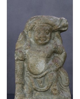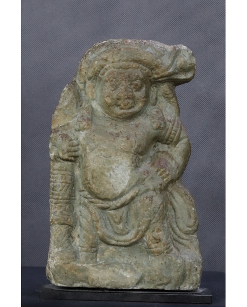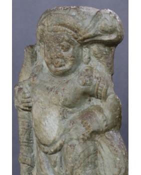 Rzeźba, którą oferuję przedstawia hinduskie bóstwo. Wykonana jest z miękkiego kamienia, prawdopodobnie steatytu bądź chlorytu i powstała w XVII wieku.