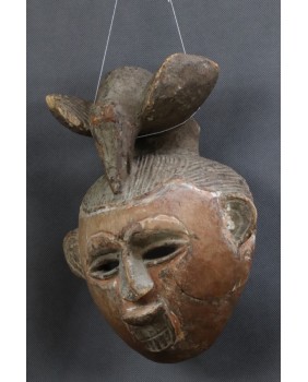 Długo się zastanawiałem skąd pochodzi ta maska. Brałem pod uwagę plemię Igbo z Nigerii , Punu z Gabonu i Jorubę z Nigerii. Podstawowe pytanie na jakie musiałem sobie odpowiedzieć to: czym jest zwieńczenie maski ? Czy jest to stylizowany ptak czy fantazyjnie upięta fryzura? Ostatecznie przyjąłem, że jest to fryzura i maskę przypisałem rzeźbiarzom Punu. Mimo braku charakterystycznego rombu z 9 diamentami. Ciekawostką jest fakt, że wszystkie maski, które uznałem za podobne do mojej były przedstawieniem ducha młodej dziewczyny. Niezależnie od plemiennej przynależności.