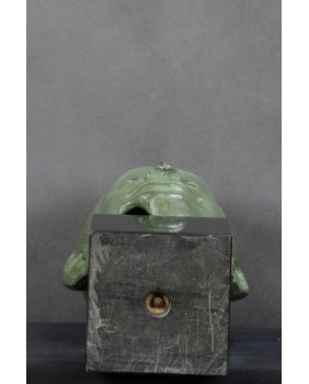 Jak sądzę, to przedstawienie jest kopią powszechnie znanej rzeźby, prawdopodobnie będącej własnością GUIMET Francuskiego Narodowego Muzeum Sztuki Azjatyckiej. Może o tym świadczyć napis na odlewie „Bronze France”. Ponadto wyszukiwarki nie wyświetlają wyników dla charakterystycznie uszkodzonej strony rzeźby. Zresztą nikt bez powodu nie odlewa uszkodzonej rzeźby.