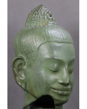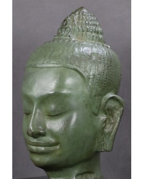 Szczególna, nieco kobieca uroda postaci pozwala sądzić, że jest to Awalokiteszwara. Uroda tej twarzy, zagadkowy uśmiech, wyraz uduchowienia emanujący z rzeźby to powody dla których rzeźbę kupiłem.