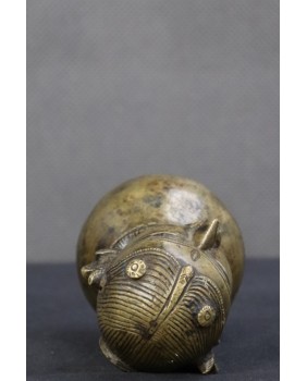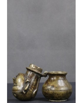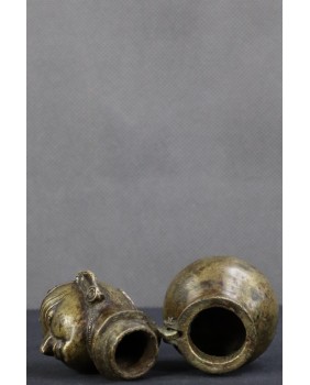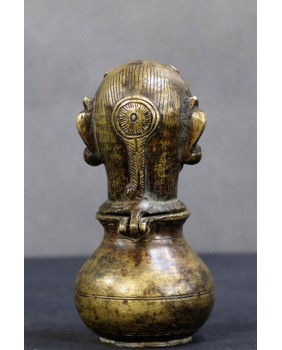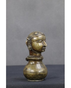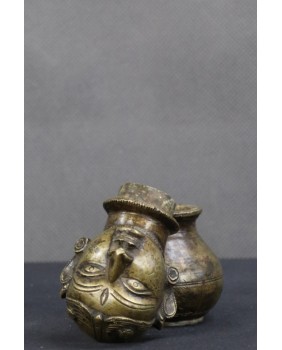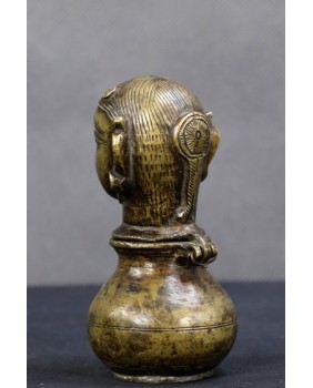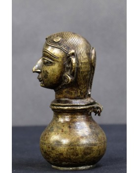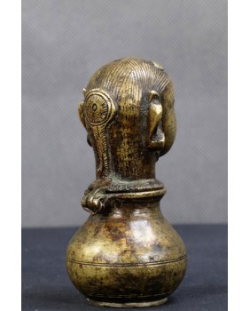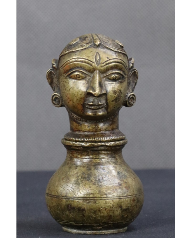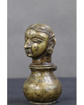 Nie znam przeznaczenia tego naczynia. Prawdopodobnie w tej formie Gauri występuje niezmiernie rzadko. Mogło służyć do przechowywania leków, ziół, afrodyzjaków. Może to rodzaj kadzielnicy. Na pewno jest stare. Ma piękne patyny. Artystycznie jest wyjątkowe. Naczynie ma 10 cm wysokości i 5,5 cm szerokości. Średnica podstawy ma 3 cm. Cena jakiej żądam może wydawać się wysoka, jak na taki niewielki indyjski brąz ale to tylko część kwoty jakiej żądają sprzedawcy za starą autentyczną głowę Gauri.