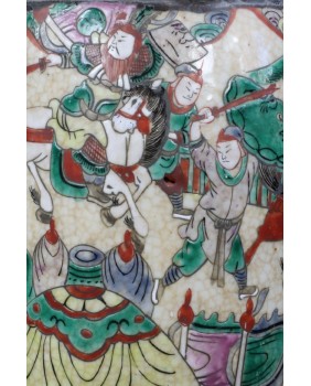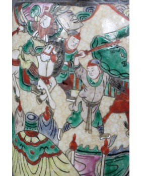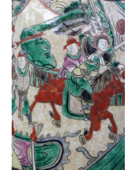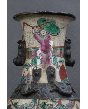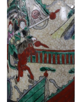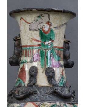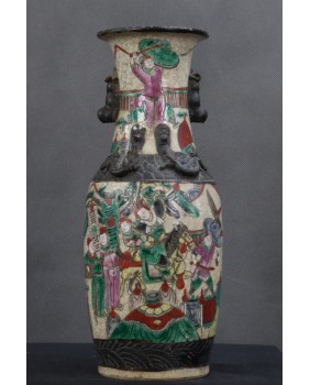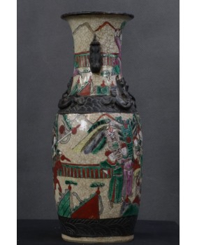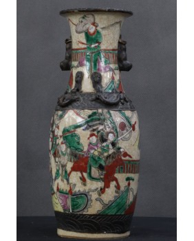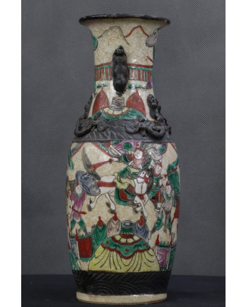Wazon, który oferuję to wzór dość często spotykany. Odpowiadał na europejskie zapotrzebowanie na chińską antyczną porcelanę. Wazon ozdobiony stylizowanymi figurkami lwów, ze scenami gwałtownej bitwy, ze sztuczną krakelurą uzyskaną w procesie wypalania, miał odpowiadać wyobrażeniom bogatego europejskiego mieszczaństwa na temat chińskiej porcelany.