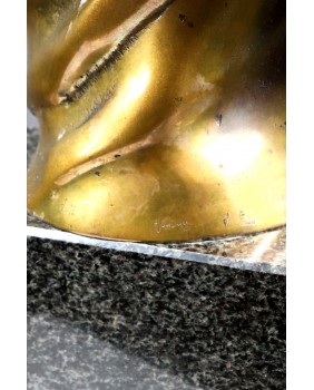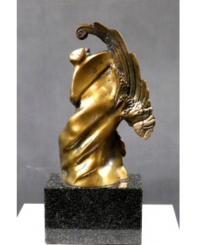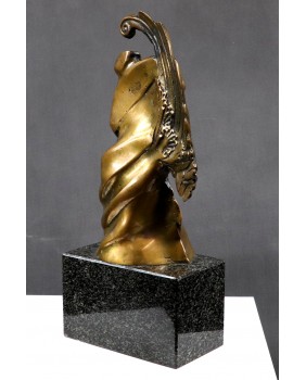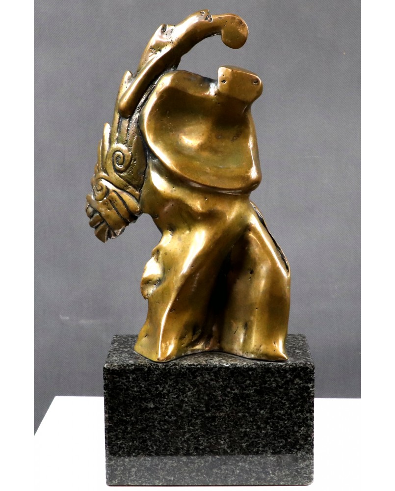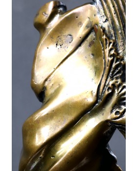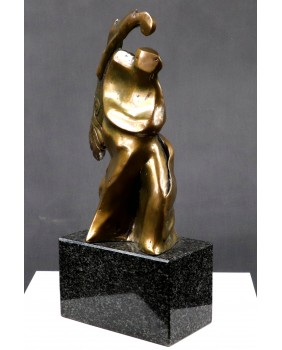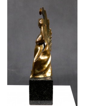 Rzeźba przedstawia prawdopodobnie postać anioła. Przynajmniej ja mam takie skojarzenia kiedy oglądam ten brąz. Choć równie dobrze może to być jakakolwiek postać niosąca na plecach ciężar, uginająca się pod brzemieniem życiowych doświadczeń. Ostateczną interpretację zostawiam przyszłemu nabywcy. Zresztą interpretacja może okazać się niepotrzebna. Wystarczy właściwie odczytać sygnaturę. Brąz jest sygnowany i to nawet podwójnie. Odczytałem sygnaturę jako Jouaquin czyli Joachim. Na świecie to imię jest dużo bardziej popularne niż w Polsce. Znalazłem wielu twórców robiących rzeźby i używających tego imienia. Jednak żadnemu z czystym sumieniem nie mogę tej rzeźby przypisać.