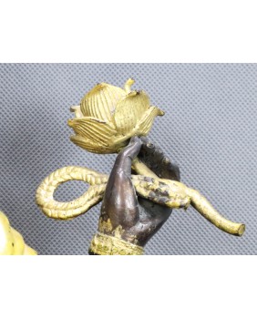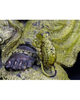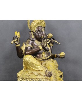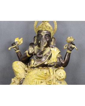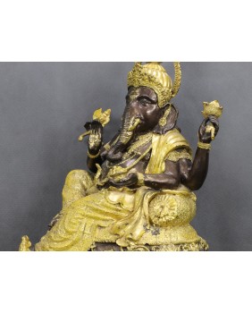 Rzeźbę kupiłem w Paryżu. Zwróciła moją uwagę złotą emalią, którą jest w dość amatorski sposób pomalowana. Pozwala mi to sądzić, że była wcześniej własnością hinduskiej rodziny, która postanowiła rzeźbę udekorować z okazji jednego z licznych świąt Ganeshy odbywających się co roku. Dobrze to świadczy o autentyczności figury Ganeshy.
