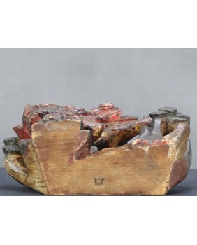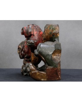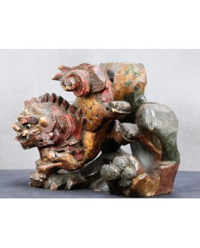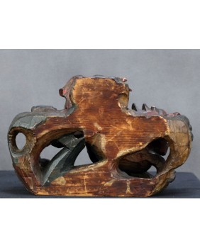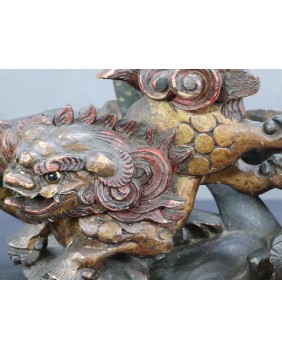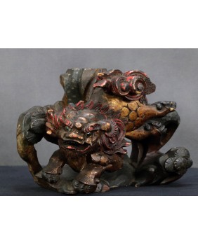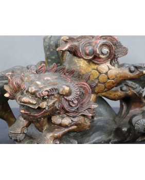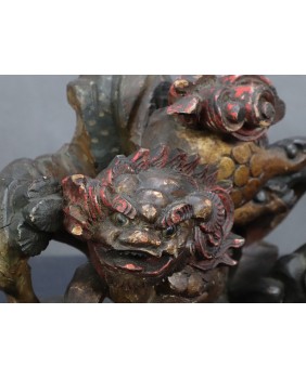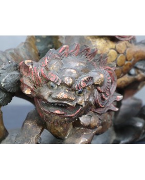 Komainu to na ogół para rzeźb pełnych. Płaskorzeźby, tak jak moja, były zwykle częścią większego reliefu. Biorąc pod uwagę rozmiar rzeźby, sądzę że była częścią domowego ołtarza. Ciekawostką są szklane oczy mogące sugerować, że powstała w dużym warsztacie specjalizującym się w produkcji świątynnych rzeźb.