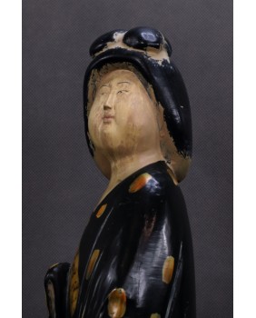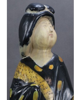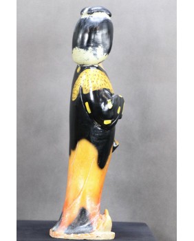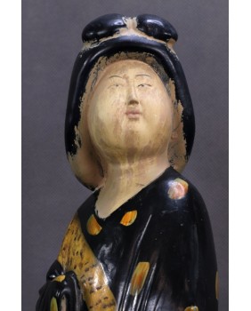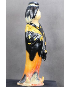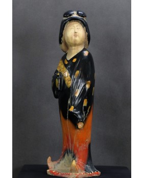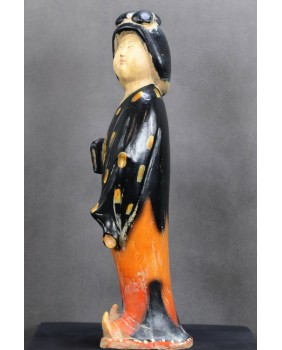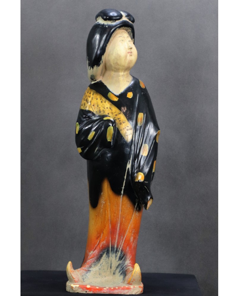 Figurka przedstawiająca kobietę ze schyłku dynastii Tang jest dwudziestowiecznym naśladownictwem podobnych figur odnajdywanych w grobowcach. Występują w pochówkach trwających ponad 1000 lat począwszy od dynastii Han po schyłek dynastii Tang. Do grobów chińskich dostojników składano wówczas nawet ich służbę, konie, rydwany i przedmioty codziennego użytku. Wierzono, że będą potrzebne w życiu pozagrobowym.