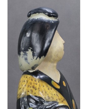 Inne figury po wypaleniu były malowane farbami mineralnymi. Dama, którą sprzedaję należy do tej drugiej grupy.