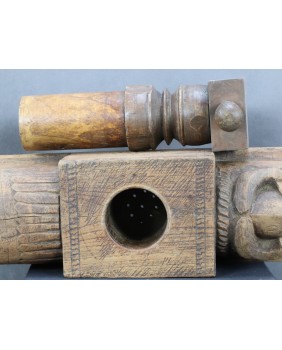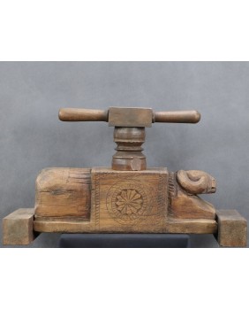 . Zwykle, podobnie jak w tej, którą oferuję, prasy zdobione są głowami, bądź sylwetkami zwierząt. Najczęściej bardzo prymitywnie wyrzeźbionymi.