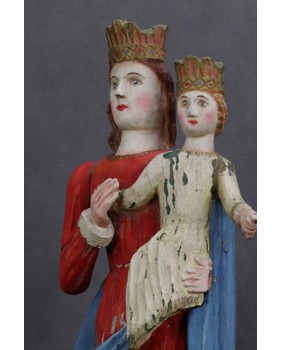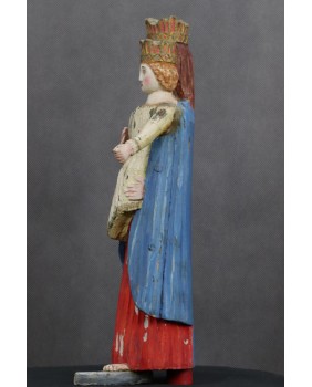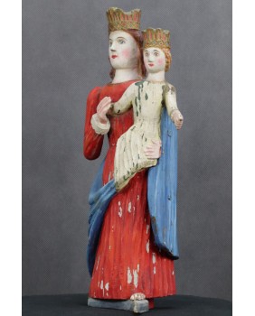 Jest niewątpliwie stara. Ma przynajmniej sto lat choć osobiście sądzę, że powstała jeszcze w XIX wieku. Dużą zaletą rzeźby tej jest polichromia. Na pewno późniejsza niż sama rzeźba. To ona sprawia, że rzeźba jest pełna wdzięku i uroku. Najbardziej rozczulił mnie księżyc, częsty atrybut starych Madonn. Zrobienie z niego podpórki pod stopy Matki Boskiej to mistrzostwo świata sztuki naiwnej.