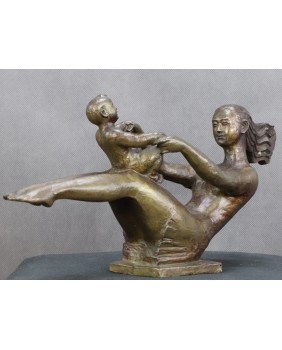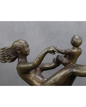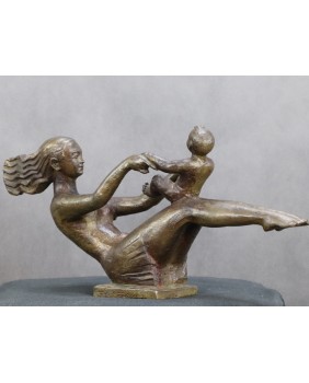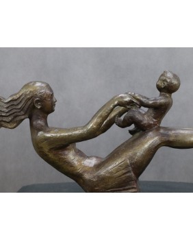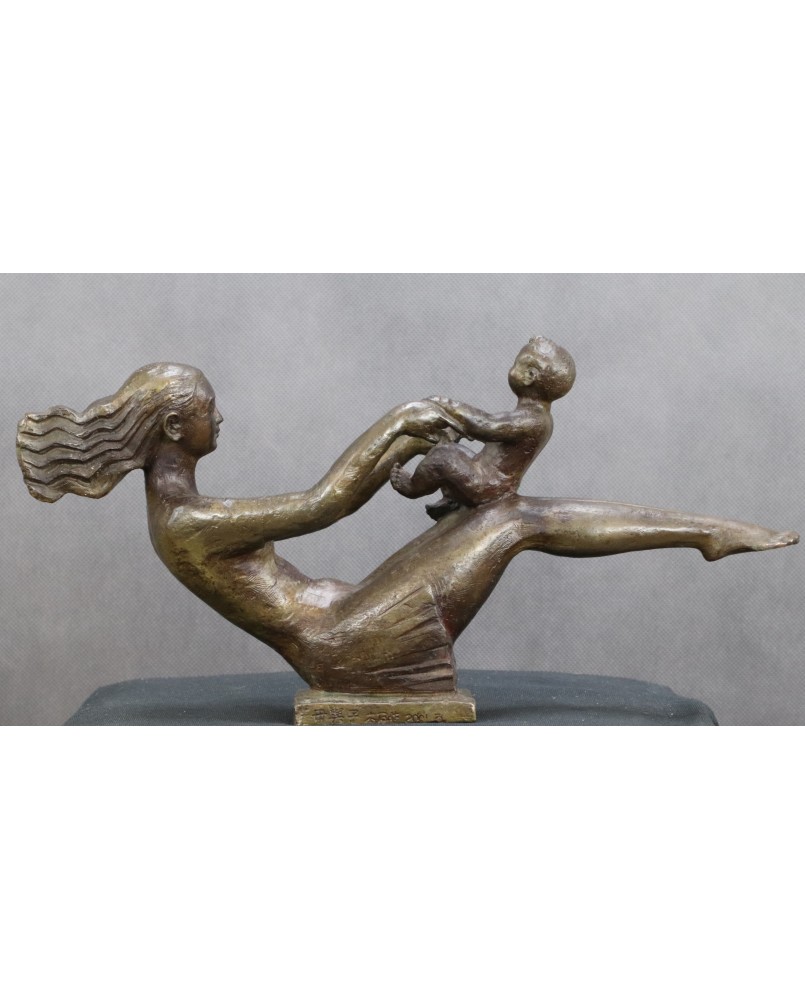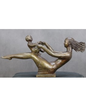 Rzeźba postała najprawdopodobniej w Chinach. Sugeruje to napis na podstawie rzeźby, który zawiera zapewne informacje o autorze. Również rysy twarzy matki potwierdzają tezę o azjatyckim pochodzeniu autora. Rzeźba powstała w roku 2001 niemniej stylistyką nawiązuje do stylu art deco. Rzeźba ma piękne proporcje, podkreśla ruch postaci a zarazem nie przesadza z jego dynamiką aby nie burzyć obrazu sielanki.