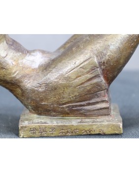 Brąz jest w doskonałym stanie. To dość duża rzeźba. Ma 35 cm długości, 19 cm wysokości i 10 cm szerokości.