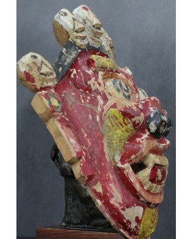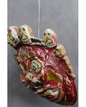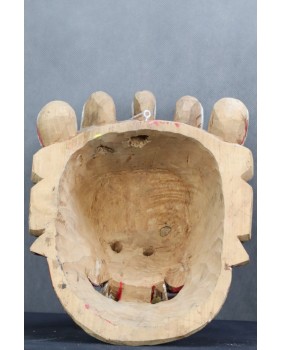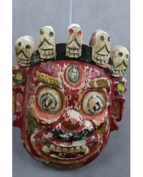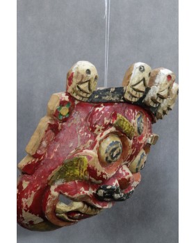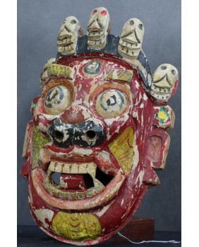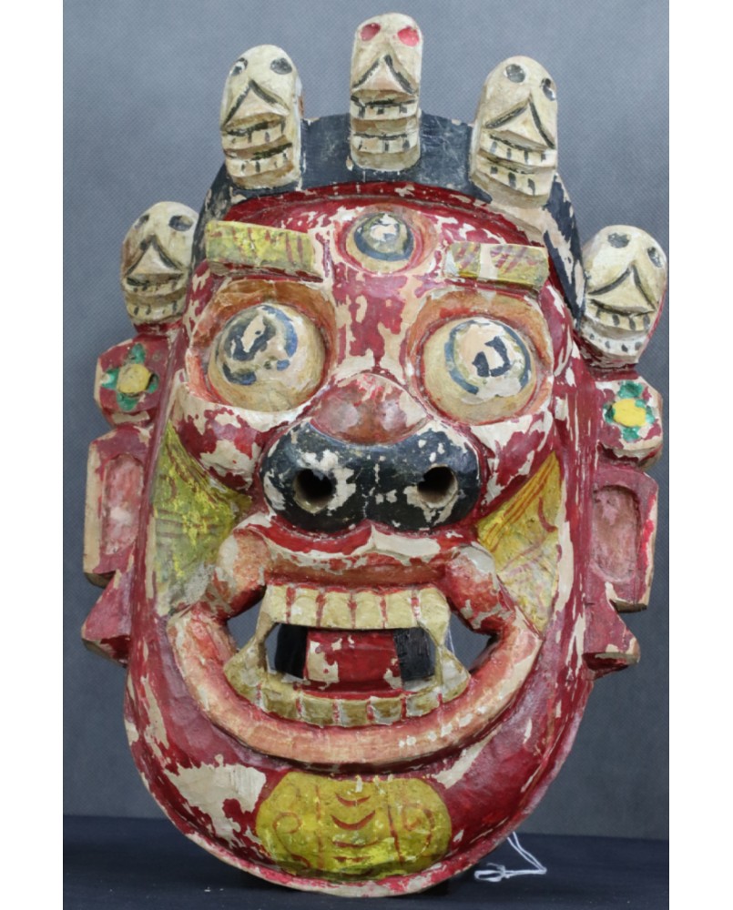 Nie pamiętam dokładnie gdzie i kiedy pozyskałem tę maskę. Prawdopodobnie kupiłem ją na Kole w Warszawie. Musi pochodzić z indywidualnych wojaży rodaków po Azji w czasach jeszcze słusznie minionych. Stawiałbym na pamiątkę z pobytu w Mongolii. Jakoś pasuje mi tu ta kolorystyka. Szkoda, że farba częściowo oblazła ale z drugiej strony to tylko dokumentuje upływ czasu. Sądzę, że maska ma przynajmniej kilkadziesiąt lat.