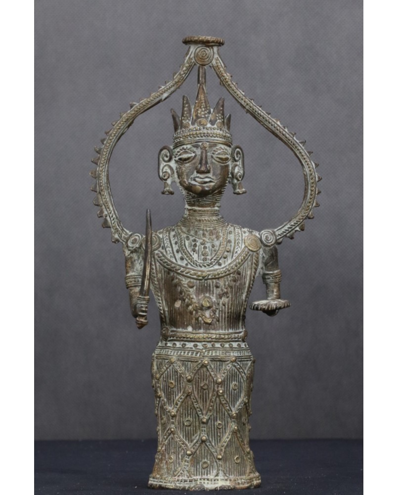 Rzeźba przedstawia boginię Danteshwari, jedno z wcieleń bóswa Durgi, potężnej bogini, która ma moc dawania i zbierania życia. Czczona jest za siłę i odwagę, zapewnia swoim wyznawcom ochronę. Jej kult szczególnie rozprzestrzenił się w regionie Bastar zamieszkałym przez społeczność Gondów. Poświęcona jej potężna świątynia w Dantewadi jest miejscem licznych pielgrzymek Hindusów.