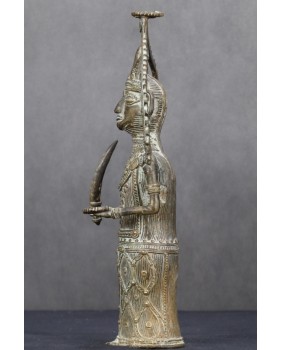 Oferowana rzeźba, została wykonana według najwcześniejszej metody odlewania metali nieżelaznych, jaką zna człowiek. Przyjmuje się, że sposób odlewania na wosk tracony z wykorzystaniem twardego rdzenia znany był już ponad 4000 lat temu. Najstarszy artefakt znajduje się w Muzeum Narodowym Delhi, jest to „ tancerka z Mohenjo” nazwana tak od miejsca w którym została znaleziona. Jej powstanie szacuje się na 2500 rok p.n.e.