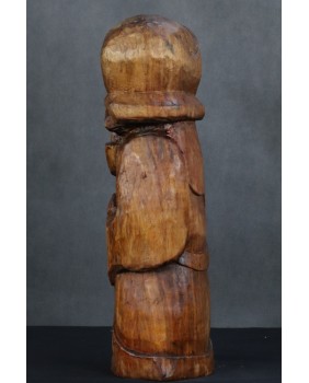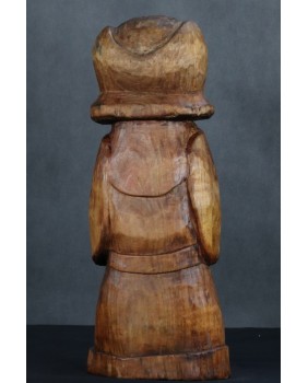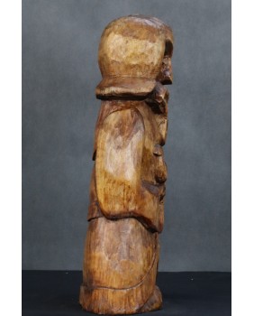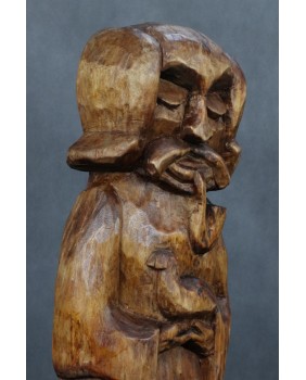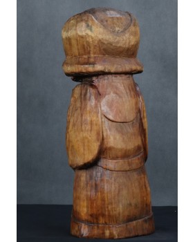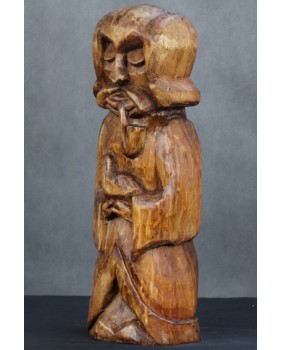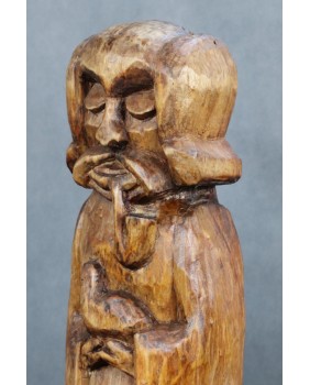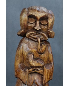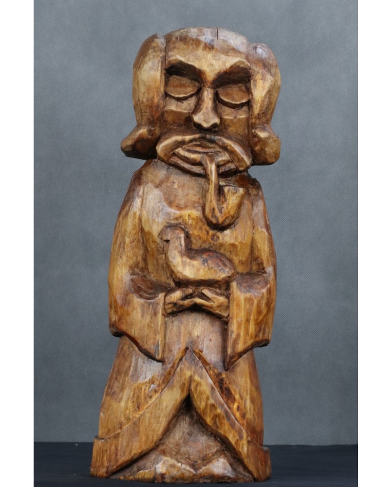 Mógłby to być Święty Franciszek. W sztuce ludowej tradycyjnie przedstawiany jest z ptakami co na pierwszy plan wysuwa jego troskę o naszych braci mniejszych. Tylko czy Święty Franciszek mógłby palić fajkę ? W ludowej rzeźbie wszystko się może zdarzyć. Widziałem kiedyś rzeźbę Chrystusa Frasobliwego z cybuchem fajki w dłoni.