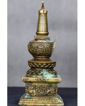 Stupa, którą oferuję jest stupą wotywną. Przeznaczoną do domowych ołtarzy lub kaplic. Aby zdobyć zasługi czy poprawić własną karmę wierni mogą sponsorować odlanie stupy. Ewentualnie wykonanie jej z kamienia. Można odlaną stupę też po prostu kupić. Stupy mają umożliwić czy raczej pomóc wszystkim istotom na ziemi osiągnięcie Oświecenia. Stupy szczególnie rozpowszechnione są w Indiach i Tybecie.