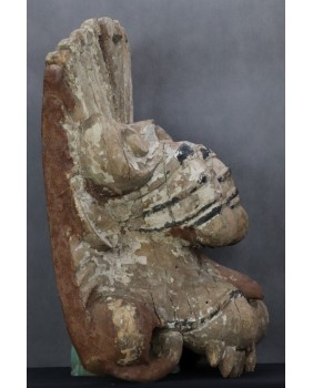 Rzeźbę kupiłem w Paryżu. Drewno jest w dobrym stanie niestety nie zachowała się oryginalna polichromia.