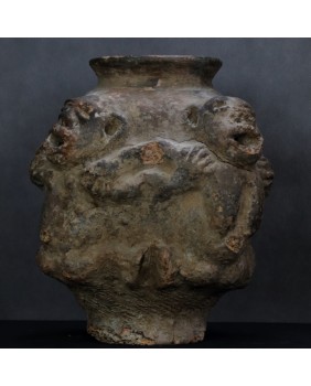 Jak zwykle przy okazji identyfikacji sztuki prymitywnej mam kłopot. Przedstawione w ten sposób ludzkie postacie, stanowiące dekoracje naczynia, mogłyby powstać w wielu kulturach plemiennych. Od obu Ameryk po Afrykę.