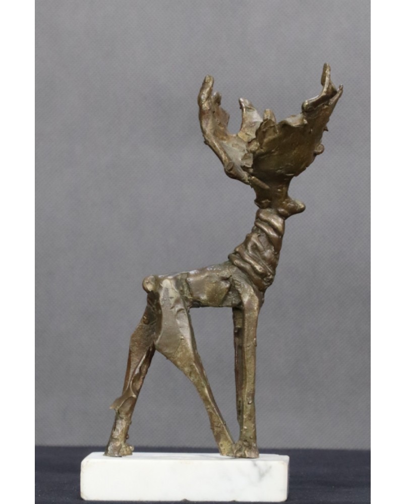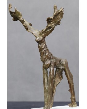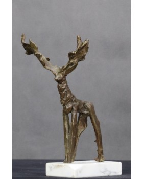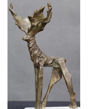Bardzo lubię podobne rzeźby, gdzie wyobrażenie artysty miesza się z realnym światem. Zwierzę zostało zarysowane bardzo zdawkowo choć z pełnym poszanowaniem anatomicznych proporcji i wyraźnym podkreśleniem cech najważniejszych. W tym przypadku jest to potężne poroże pozostające w opozycji do smukłej sylwetki. Wyszło moim zdaniem pięknie.