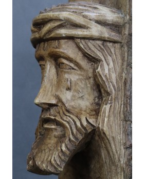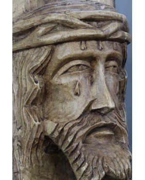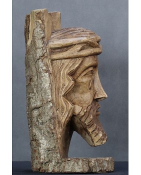 Gdy później próbowałem weryfikować informacje sprzedawcy, okazało się, że podobne rzeźby najczęściej oferowane są na portalach hiszpańskojęzycznych. Domyślam się, że przedstawienia Chrystusa w koronie cierniowej, z toczącą się po policzku łzą, wykonane z kawałka pnia z pozostawionym fragmentem kory są wytworem naiwnej sztuki ludowej, charakterystycznym dla kilku regionów świata.